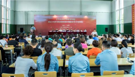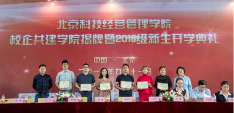 金秋九月,秋风飒爽。在深入学习“全国教育大会”讲话精神和喜迎教师节到来的热烈氛围中,北京科技经营管理学院校企共建学院揭牌暨2018级新生开学典礼于2018年9月11日在北京隆重举行。北京科技经营管理学院董事长郑役兵、院长刘淑艳,北京理工大学管理与经济学院教授、博士生导师何海燕,北京清华同衡规划设计研究院二所所长、高级工程师李婷、中国软件行业协会教育与培训委员会副秘书长卢文静,北京北视英特维文化传播公司董事长郑星,中航人才(北京)教育科技公司总经理李晓新,北京易茗造型时尚集团副总经理孙德华等嘉宾,来自各合作单位的领导、嘉宾及师生和家长代表,共三百余人出席典礼活动,北京科技经营管理学院副院长赵远洋主持仪式。