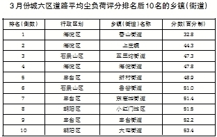 道路尘负荷是衡量道路扬尘污染的重要指标,为有效控制扬尘污染,压实属地扬尘治理责任,北京市生态环境局委托第三方机构对城六区133个乡镇(街道)共873条主要道路尘负荷进行了监测评估,衡量道路清扫保洁效果,并依据监测结果量化评分予以排名。评分采取百分制,分数越高代表道路尘负荷越低,即路面尘土越少。