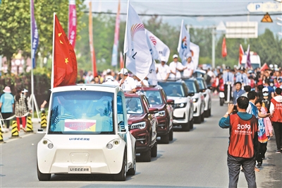 5G自动驾驶汽车开道,云端智能机器人与“走友”亲密接触,2019年房山举办的北京国际长走大会 “高精尖”范儿十足。