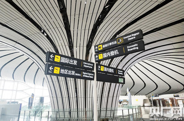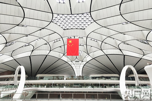 航站楼位于整个大兴机场的中心地带,由主楼和指廊、综合服务楼构成。这是国内机场首次采用五指廊放射型的集中式布局,指廊构型能够在提供更多的近机位数量的情况下,最大限度的缩短旅客的步行距离。据工作人员介绍,旅客从航站楼中心到最远机位的步行距离控制在600米,步行仅需8分钟。(央广网记者 王启慧 摄)