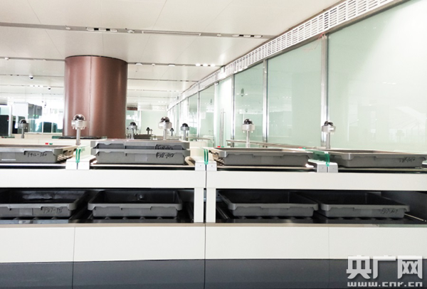 “刷脸”出行、行李跟踪、行李直挂、无障碍通行等高效便捷出行服务都将在大兴机场应用。图为机场安检处。(央广网记者 王启慧 摄)