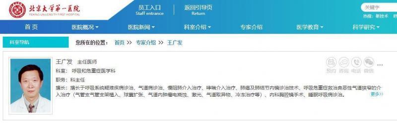 2020年1月21日,记者从北京大学第一医院获悉,呼吸和危重症医学科主任王广发疑似新型冠状病毒感染肺炎,目前正在隔离治疗。据了解,王广发是新型冠状病毒感染肺炎专家组成员,曾随国家卫健委专家组前往武汉。