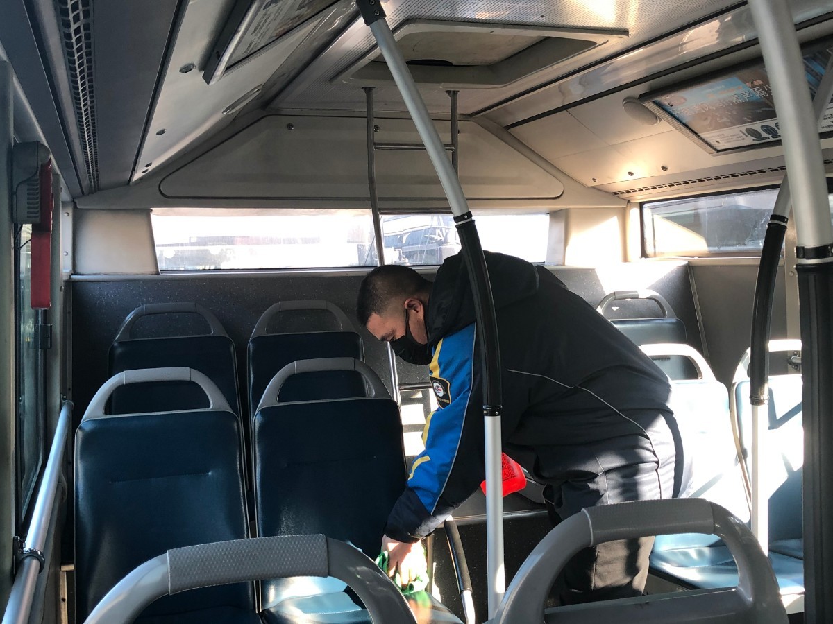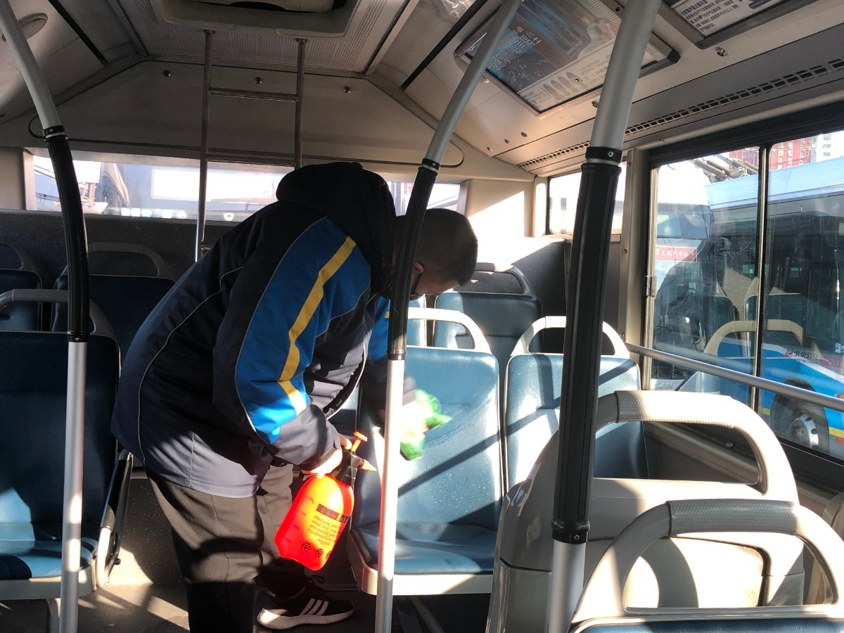 北京公交集团基建行政部经理马秋生介绍,公交集团所属运营车辆和所辖企业出租车、旅游大巴、有轨电车等进行每天的车厢消毒,安排专人实施消毒、通风工作,并做好记录。