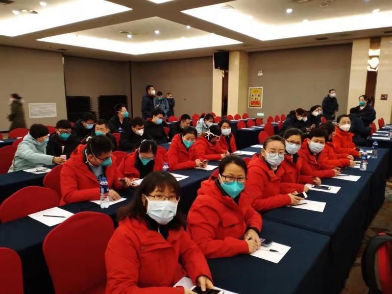 医疗队抵达后,首先接受了关于新型冠状病毒感染的肺炎诊疗方案的专业培训,并对支援物资进行清点,随后进入院区,快速熟悉工作环境等。北京市属医院支援武汉医疗队计划29日进驻西院工作,并开始接收新型冠状病毒感染肺炎确诊患者,清华长庚队员们的排班预计在30日。清华长庚医疗队临时党支部在支部书记郭军的带领下,召开了首次支部会,由支书传达北京市属医院支援武汉医疗队整体工作安排,并强调了上岗前注意事项,防护工作成为了本次会议的重中之重,虽然医院对队员们都进行了初步的培训,但结合当地以及配备物资的实际情况,由郭军和周华医师指导,强化了对队员们穿脱防护服、消毒等方面的培训工作。