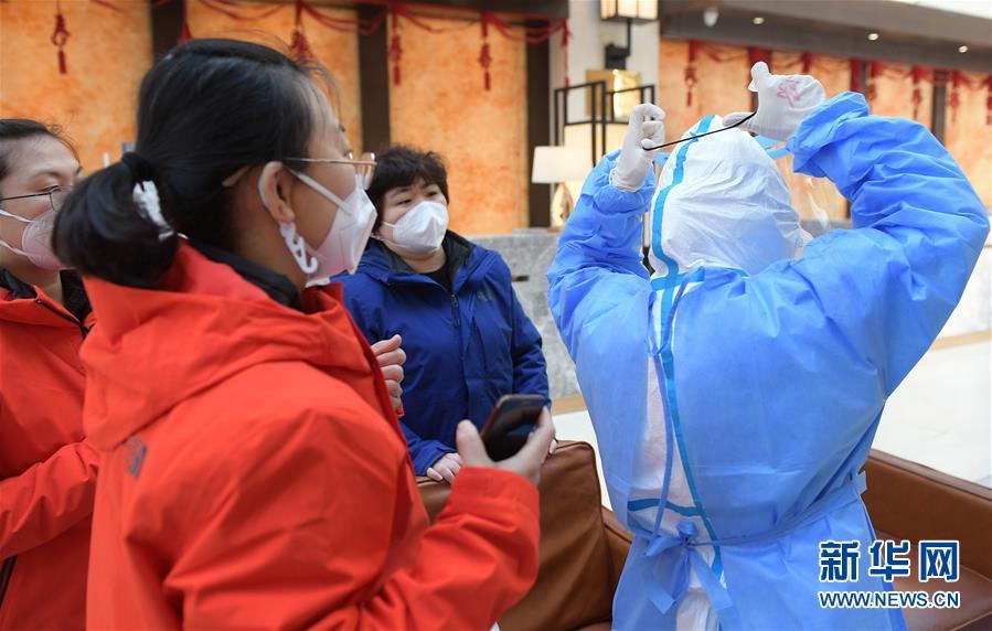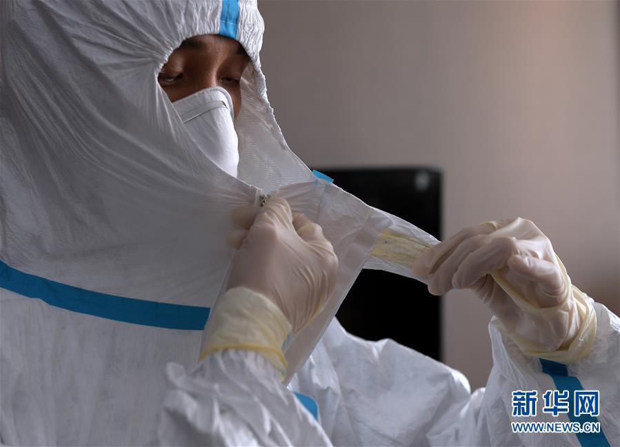 1月29日,一名来自北京安贞医院的医护人员在医疗队驻地练习防护服的穿脱。 当日,北京市属医院驰援武汉医疗队队员在驻地利用休整时间加紧练习防护技能,为进入“前线”救治病患做最后的准备。据了解,这支医疗队由北京友谊医院、北京安贞医院、北京宣武医院等12家北京市属医院的136名医护工作者组成,他们大多来自重症医学、呼吸、感染等专业。 新华社记者李贺摄