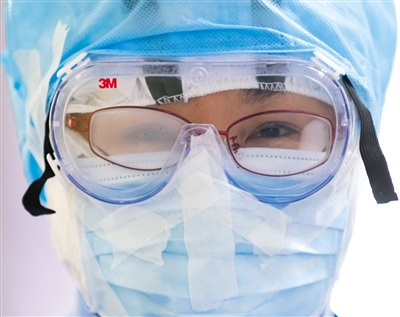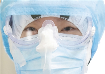 一天下来,勒紧的护具磨烂了皮肤,厚重的防护遮住了美丽面庞。但在病人面前他们却总是乐观向上,厚厚护目镜后透出的是坚定的眼神。
