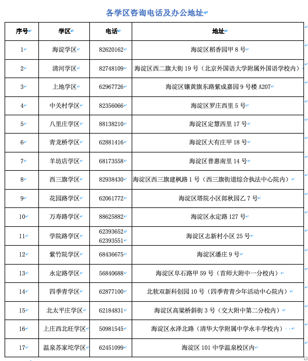 解读:除了锁定为登记入学学校的第一志愿外,其余志愿家长可自行选择填报。按照政策分析,基本上是以所在学区范围的小学为主。当然还得考虑学区内各小学的学位和“1911”前购房业主子女人数,如果某所小学解决“1911”前购房业主子女入学后已没有多余学位,那么它将不不会出现在这个志愿表中。另外,考虑到海淀区整体面积比较大,部分学区尤其山后地区的学区范围较大,比如苏家坨温泉学区,因此也会相对就近的原则进行适度切分,尽量保证孩子就近入学。