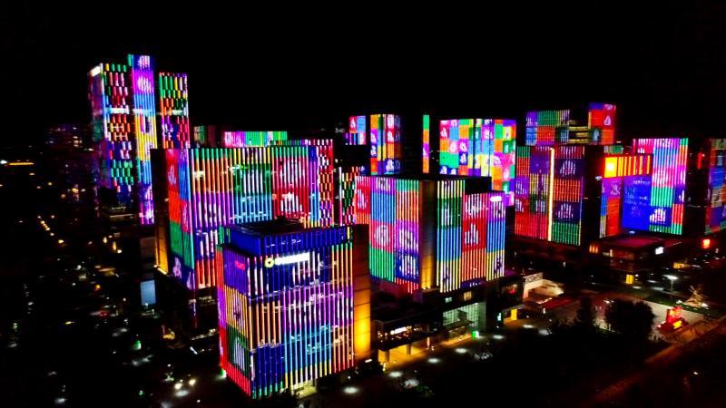 本次灯光秀还将运用楼宇折角屏幕打造北京首个结合3D裸眼技术的大型楼宇灯光秀。以20栋楼宇建筑表面为媒介,通过光影的巧妙组合,配合园区折角高清屏幕本身的线条和棱角,将建党程100”00”筑表面为媒介,通过光影的巧3D裸眼的透视效果,呈现美轮美奂、沉浸逼真的视觉盛宴。