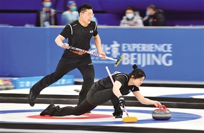 4月2日,冰立方,运动员在场内进行冰壶比赛。 新京报记者 陶冉 摄