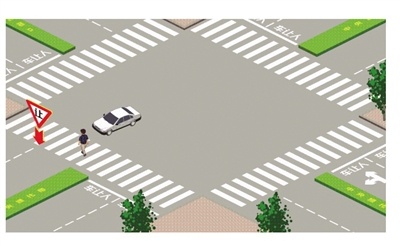 4、交叉路口右转车辆 右转车辆遇行人正在通过人行横道,应当停车让行。