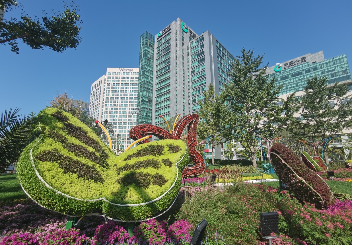 相关负责人表示,全区国庆花卉主要以红、黄、粉等艳丽色调为主,金融街区域通过补植“粉、紫、蓝”等温馨色调为主的耐寒花卉,以及加强养护等方式延长花期,实现国庆和金融街论坛期间的花卉景观有效衔接,营造浓厚的喜庆祥和氛围。