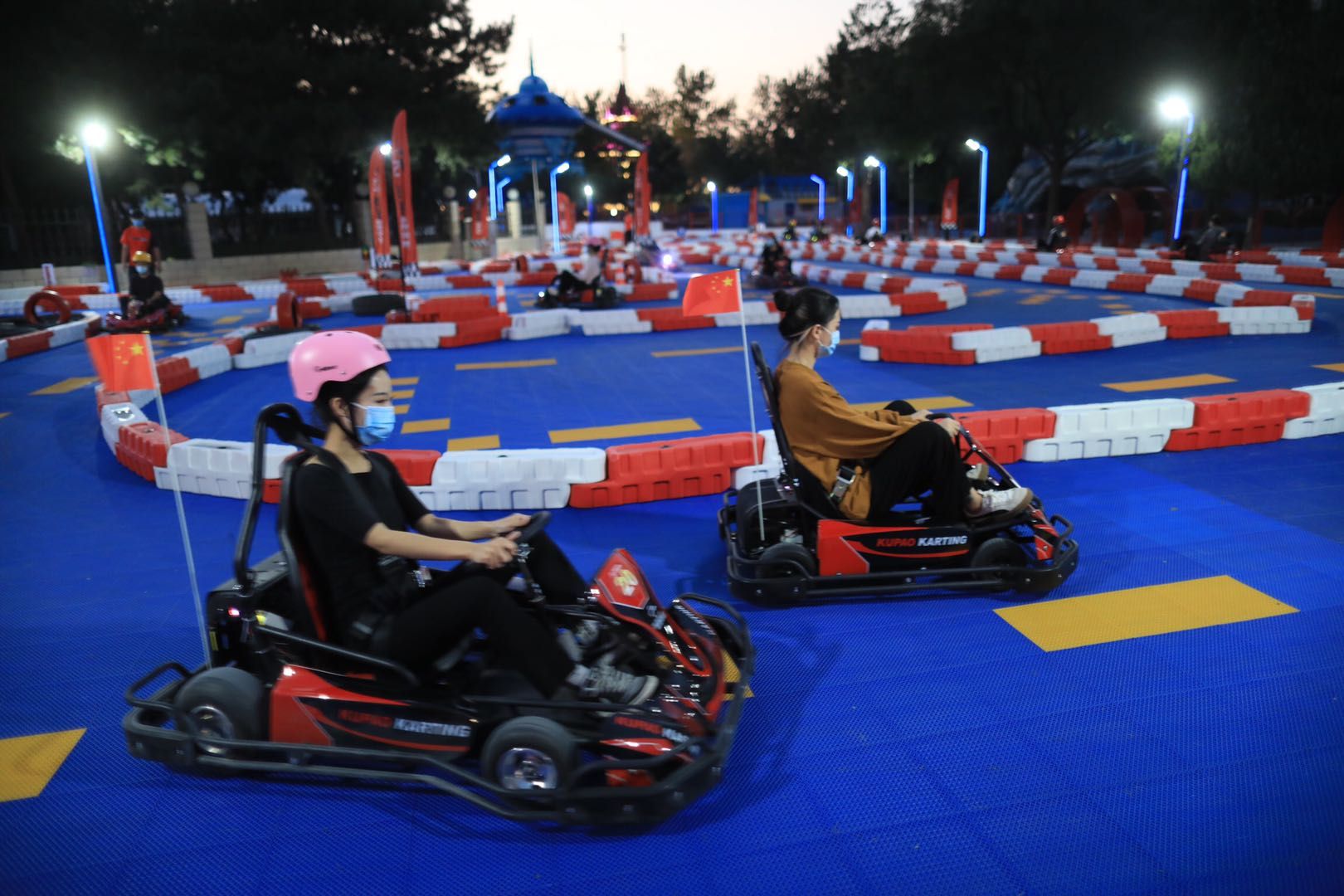 游客在石景山游乐园内体验酷跑卡丁车。新京报记者 浦峰 摄