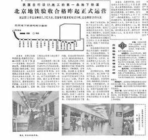 1965年,北京地下铁道一期工程正式开工,毫无经验的第一代地铁建设者,在摸索中攻坚克难。北京地下铁道第一期工程于1969年10月基本建成,于1971年1月开始试运营。