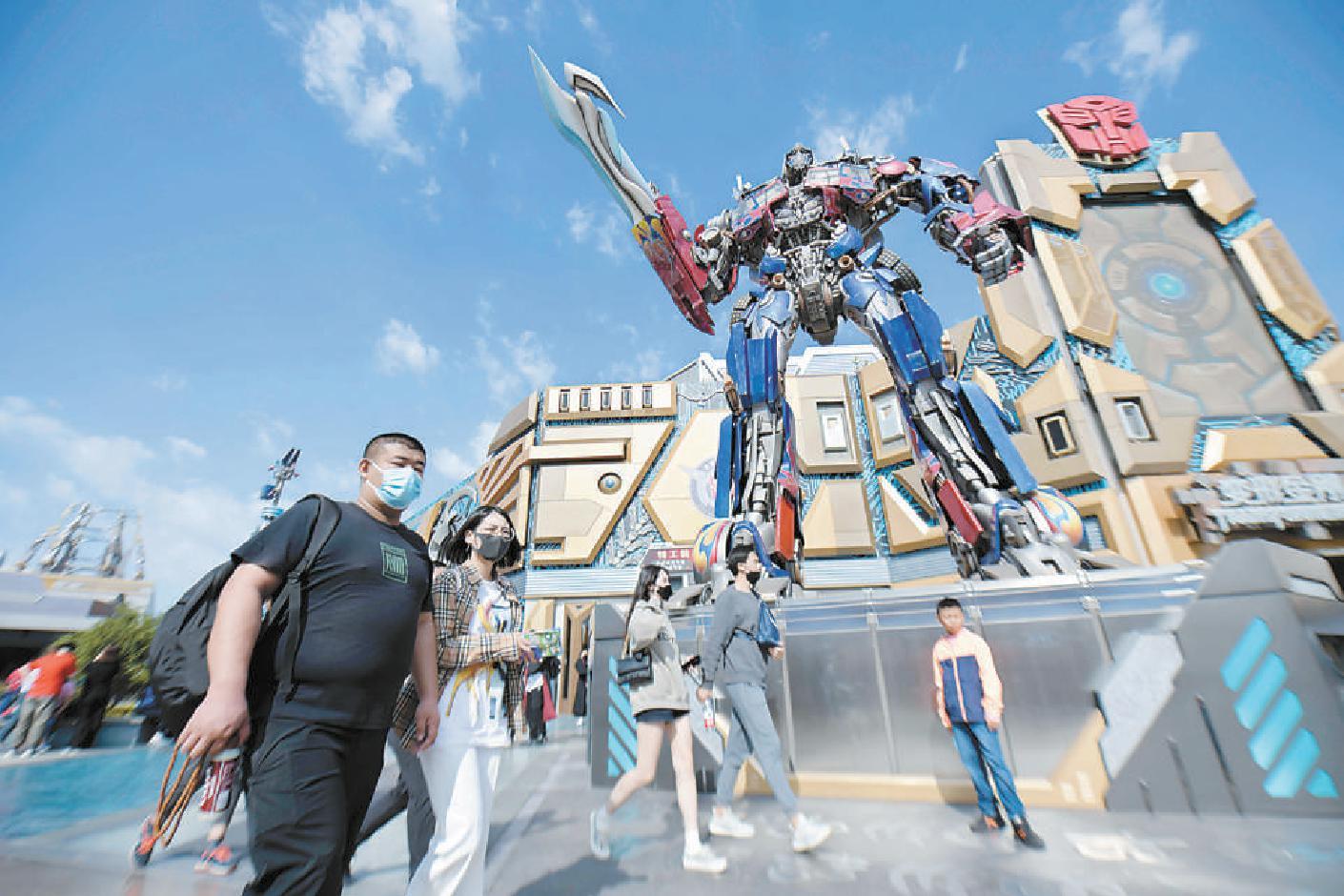 节日期间,环球影城吸引大批游人。 本报记者 和冠欣摄