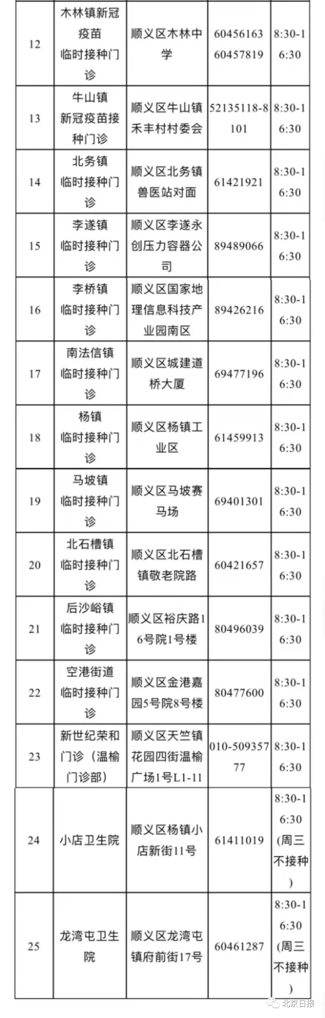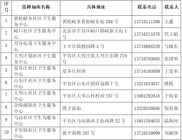 各区接种点一览