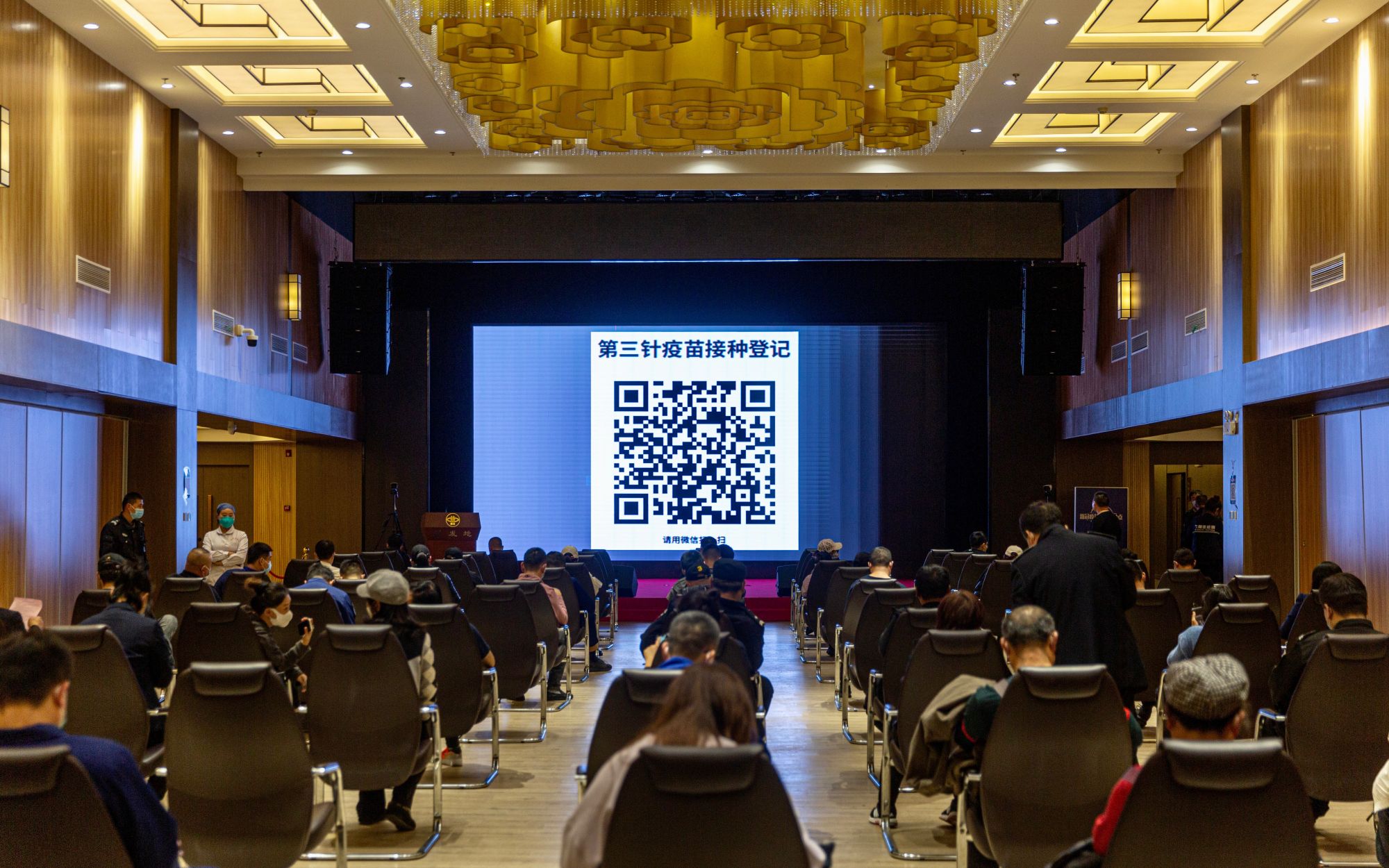 新发地市场,商户与员工们有序排队接种新冠疫苗“加强针”。新京报记者 郑新洽 摄