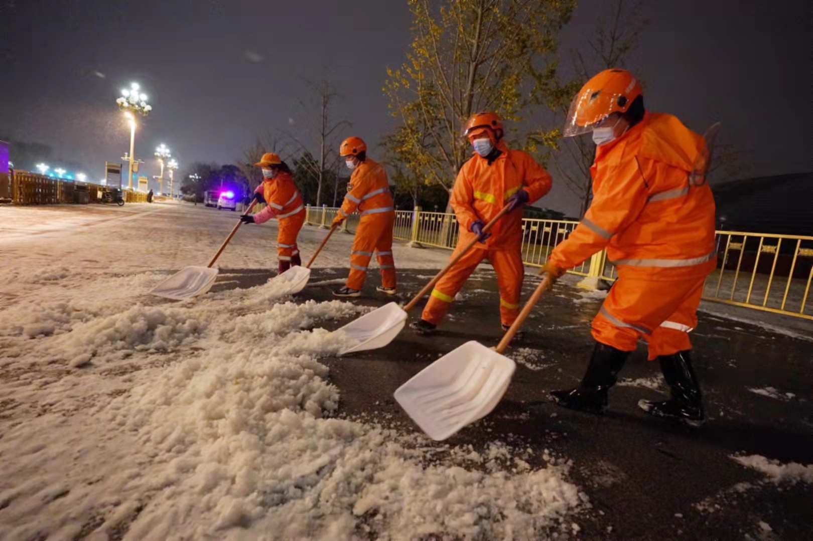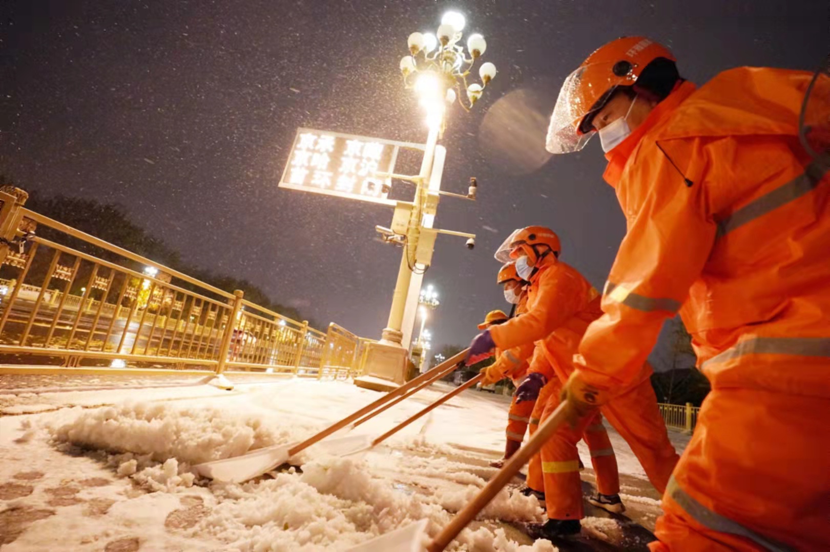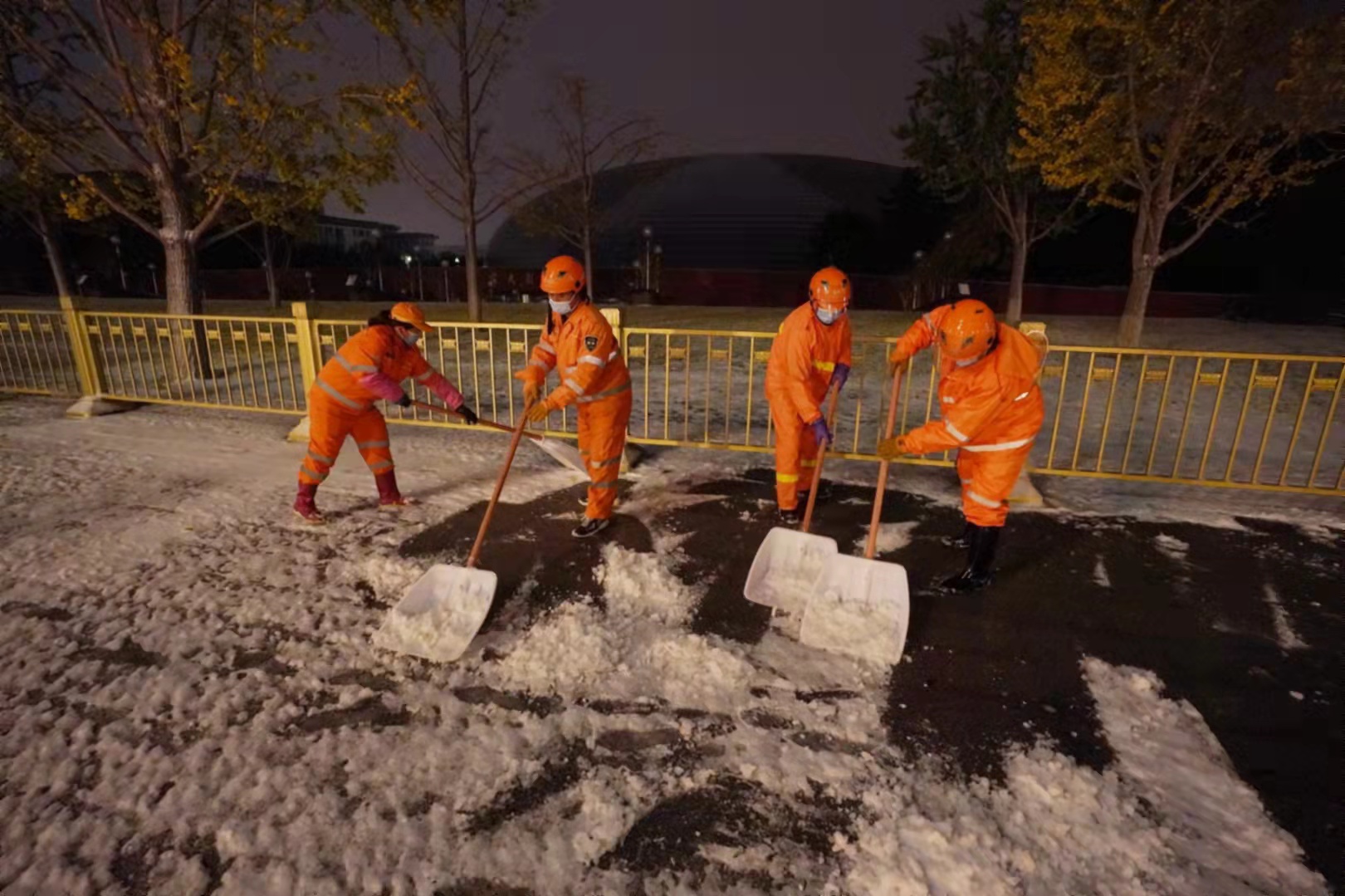来源标题:顶风冒雪!北京环卫职工凌晨为您扫冰除雪,多图