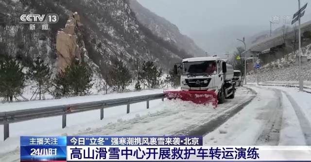 此外,赛区的运行团队还跟医疗保障团队进行了医疗急救的演练。因为能见度特别低,所以他们就模拟在赛时,救援直升机到达不了赛区的情况,所以,就要派山地急救车把受伤的运动员快速转运到相应的医疗急救点,转运到山下。