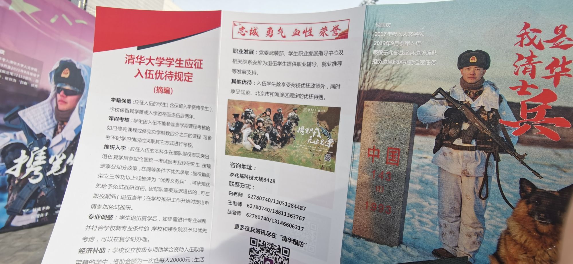 清华大学武装部教师在接受采访时表示:“今年我校学生参军入伍的热情非常高,通过线上线下的方式咨询入伍政策,初步报名人数超过了往年”。