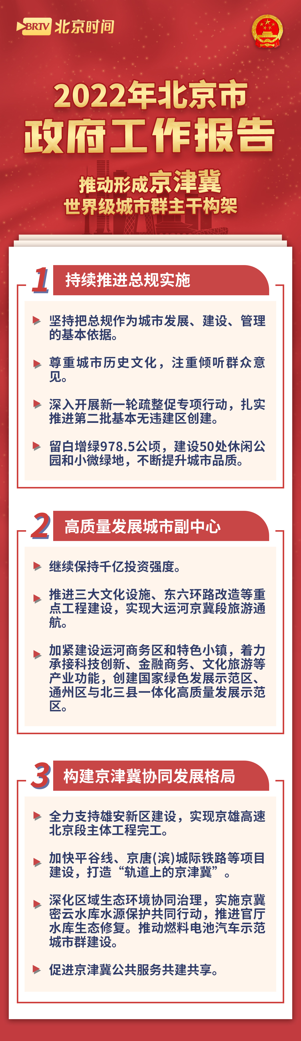 2022年1月6日上午9时,北京市十五届人大五次会议开幕。会上,市长陈吉宁代表北京市人民政府作工作报告。“强化规划战略引领,推动形成京津冀世界级城市群主干构架。”在2022年京津冀一体化的蓝图中,有哪些举措值得关注?一图读懂→