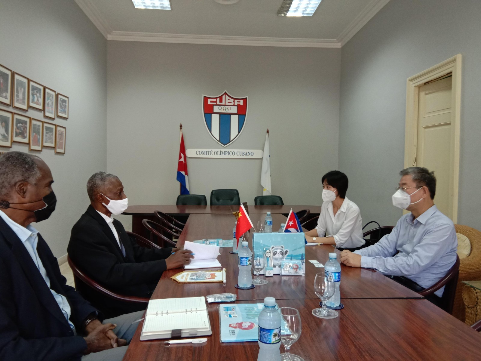 在北京冬奥会即将召开之际,中国驻古巴大使马辉近日走访古巴奥委会,同古奥委会主席莱昂、秘书长埃雷拉进行了友好交流。