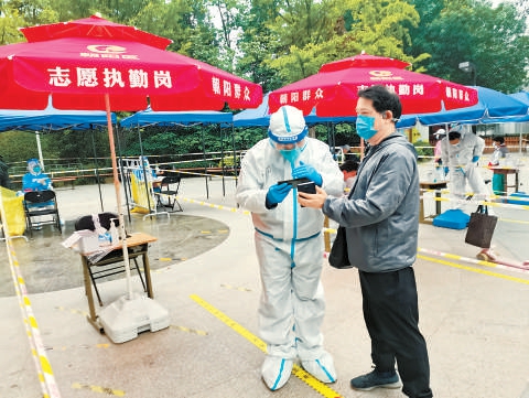 “阿姨,别着急,您慢点”“小朋友,别紧张,自己来核酸检测非常棒”……昨天(10日),北京市区安贞街道五路居社区小花园核酸检测点,早上6点半就迎来第一波检测小高潮。聂晶拿着手机忙活起来,逐个扫描录入,仔细核对身份证信息。
