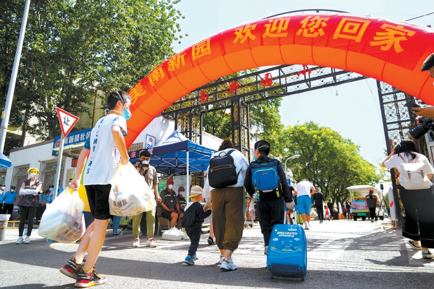 28日,朝阳区南新园小区近5000名居民结束集中隔离后开始陆续分批回家。 本报记者 程功摄