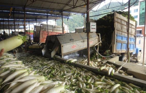 二是加强采后商品化处理,对于粘附泥土需要清洁的叶类蔬菜,应避免整棵清洗,只清洗或用湿布擦洗带泥部分,清洗后在阴凉处晾干表面明水后再入库贮藏或包装销售;对于萝卜等根茎类蔬菜,采收时粘附泥土较多,如短时间内销售则可用水冲或湿布擦掉泥土,如需长时间存放则可待表面泥土晾干后直接贮藏;对于受机械损伤的产品,要根据损伤程度进行分类销售或加工利用;对于积压产地的蔬菜,要预冷消除田间热后再进入冷库贮藏以延长保鲜时间,减少腐烂损耗。