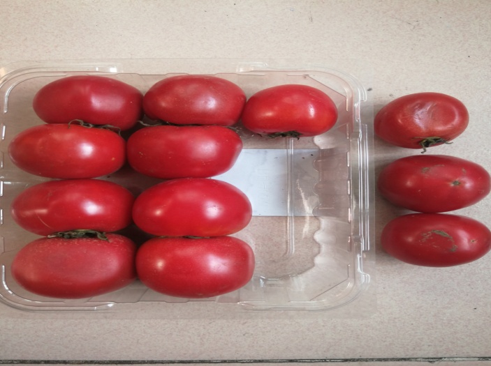 空果、畸形果、小果、着色不均、裂果、缺素症状,口感差、糖酸比不适宜,机械损伤为影响商品性主要问题。夏季番茄采收期集中,不同茬口出现采收高峰期略有差异,本市一般在6月中下旬、7月中下旬、8月中旬。番茄按照果皮厚度分为薄皮品种、厚皮品种,按照食用方式分为菜用普通番茄和水果型番茄。整齐度高、商品性好的番茄,建议分级销售,增加销售收入;小果、空洞果、畸形果比例高,整齐度差的番茄,建议混合销售。空果、小果多为座果多且未疏果,肥水管理不当造成;着色不均多为叶片遮挡所致;畸形果多为花芽分化期温湿度不适宜,也有部分生物调节剂使用不当造成的;机械损伤多为采收、包装、贮运方法不规范造成;裂果与品种、肥水管理、成熟度过度有关;口感差、风味淡、糖酸比不适宜,与品种、施肥种类及比例,控水情况,采收成熟度有关。采收成熟度与品种、销售方式、销售距离、直接销售或贮藏等因素有关。
