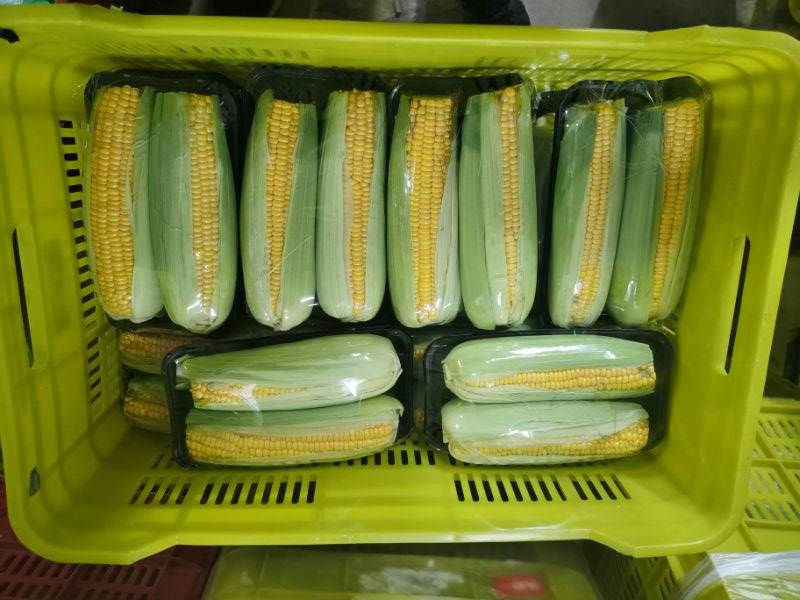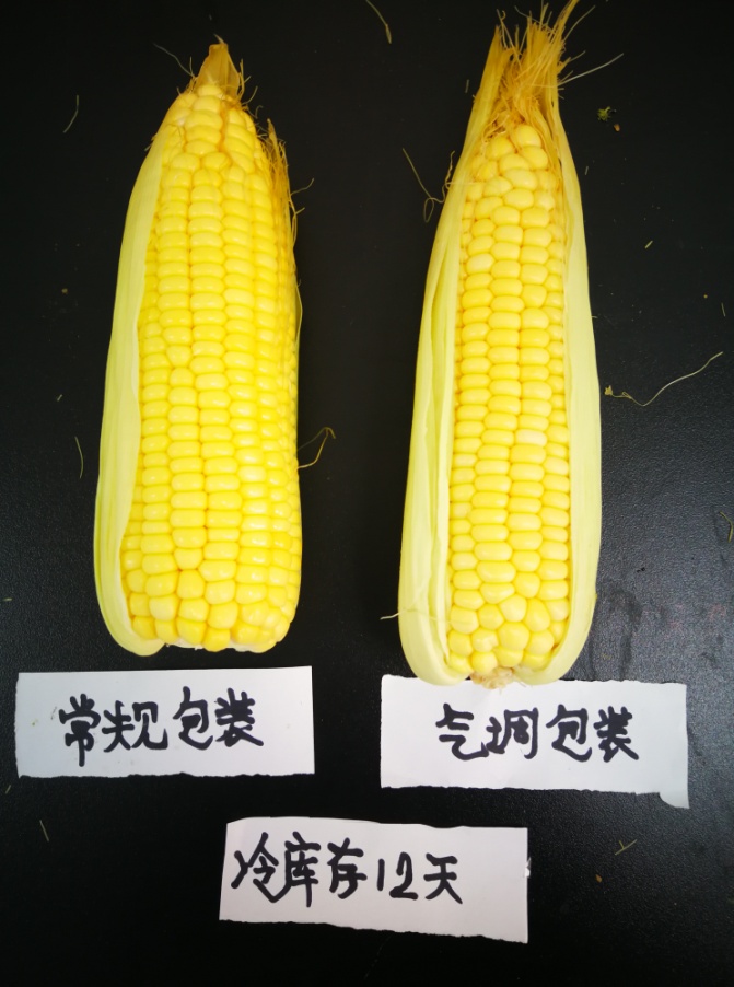 甜玉米包装分为贮藏包装和销售包装两种方式,应根据产品品牌定位、销售渠道和配送方法,选择适宜的包装方式,合理的包装方式能延长货架期。鲜穗除可采用保鲜膜包裹、保鲜袋包装、托盘+保鲜膜、纸箱纸盒纸袋等传统包装方式外,还可选用气调包装、微波包装、纳米包装、物理保鲜包装等新型包装方式,