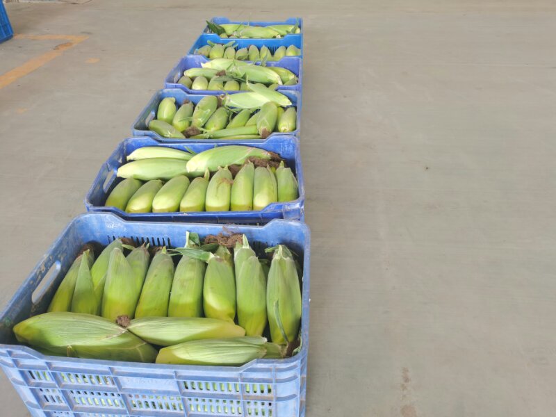 甜玉米商品性要求:穗型粒型一致;籽粒饱满,排列整齐紧密,具有乳熟期应有的光泽,柔嫩皮薄脆甜;穗基本无秃尖,无虫咬,无霉变,无损伤,苞叶包被完整,新鲜嫩绿。