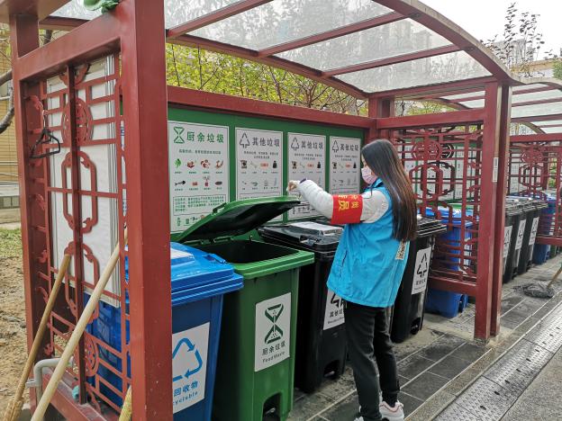 充分利用电子显示屏、微信、宣传海报、横幅、宣传活动、分时段入户向小区居民发放垃圾分类宣传折页及“两桶一袋”等宣传品、在小区垃圾投放点安装智能语音提示设备,逐步推行居民对垃圾分类工作从“要我做”转变为“我要做”的主体转换。