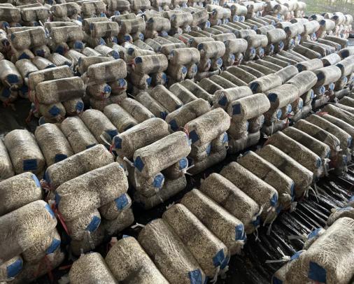 建议使用发酵料加短时高温技术处理培养料,以节省能源。推荐培养料配方: