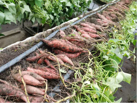 昌平区农业技术推广站祝宁高级农艺师总结了草莓套种甘薯的优势:一是能够充分利用设施空间,增加土地利用率,提高种植户收益,亩增收1.3万元以上;二是提高资源利用率,通过甘薯吸收草莓土壤(基质)中过剩的营养元素,缓解草莓日光温室连年种植出现的肥料积累问题,改善土壤(基质)环境;三是达到甘薯提早上市的目的,甘薯的营养保健价值较高,北京市场对甘薯的需求量不断增加。套种甘薯的上市时间比大田生产提早70天以上,可以填补北京夏季新鲜薯块销售的空白;四是采收甘薯叶食用,丰富市民菜篮子。在套种过程中,可以不断采摘嫩尖和叶片食用,具有突出的养生保健功能,同时补充了京郊叶类蔬菜品类;五是日光温室内套种甘薯可为露地甘薯种植提供种苗。在6月底之前,将棚室内的甘薯蔓剪成具有4-5个节间的茎段,作为种苗种植在露地上,节省了露地购苗成本3000余元,达到一苗两用的效果。