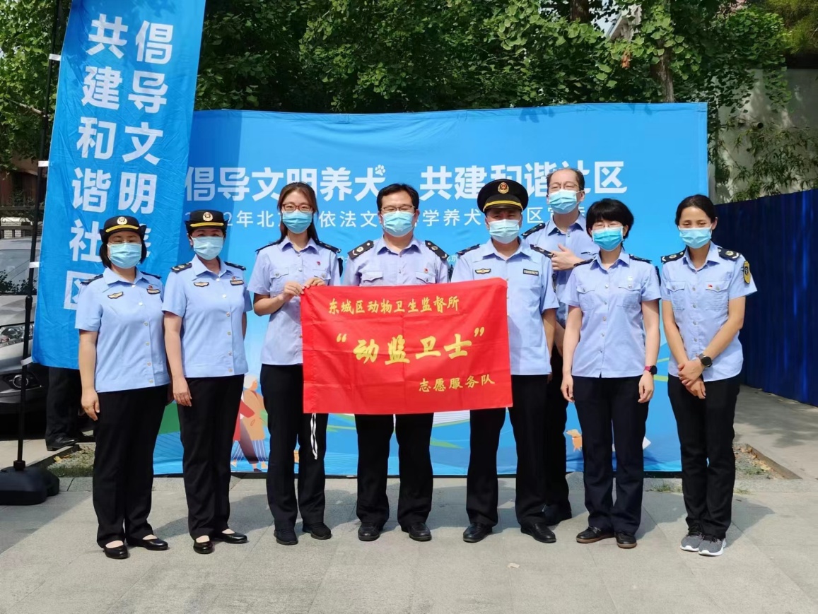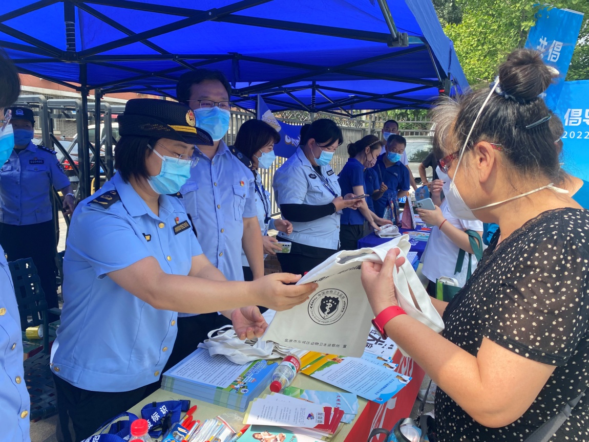 为规范居民文明养犬行为,提升文明养犬、预防狂犬病的意识,北京市农业综合执法总队联合东城区动物卫生监督所、东城区公安分局,自7月14日起开展为期两周的“倡导文明养犬,消除狂犬病”主题宣传活动,并会同崇文门街道新景家园社区、东花市街道枣园社区、朝阳门街道SOHO广场、安定门街道青年湖公园南门等社区开展四场现场宣传活动。