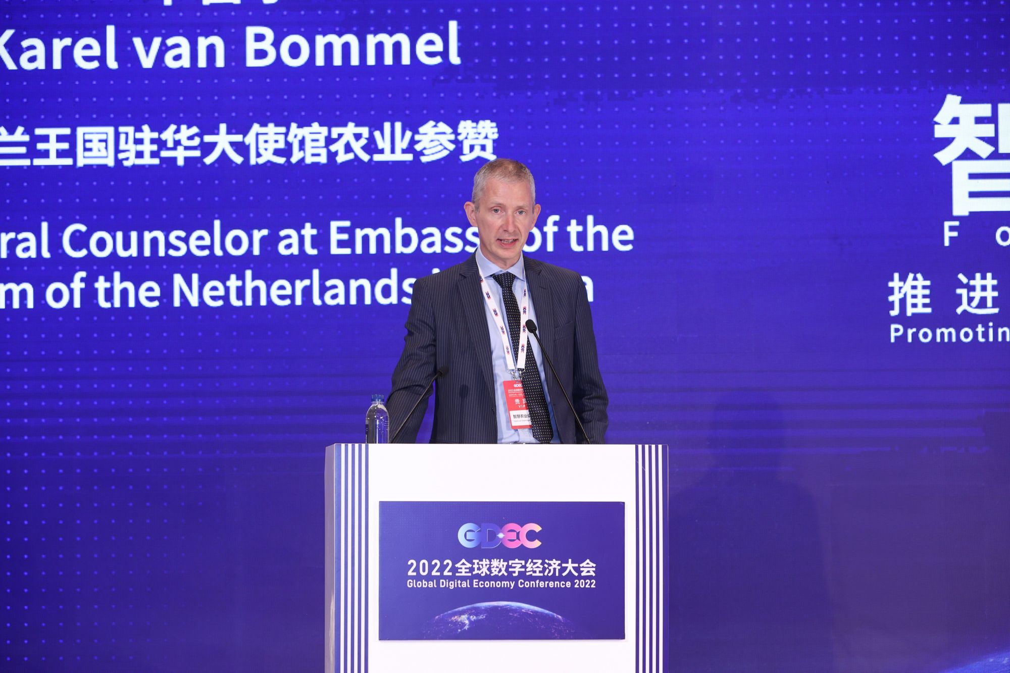 在嘉宾致辞环节,荷兰王国驻华使馆农业参赞卡雷尔(Karel van Bommel)现场致辞,以色列驻华大使馆经济贸易参赞柯霭晴(Esti Ayalon-Kovo)进行了视频致辞,北京市人民政府副秘书长陈蓓代表主办方致欢迎辞。该环节由北京市委农工委书记、北京市农业农村局局长付兆庚主持。