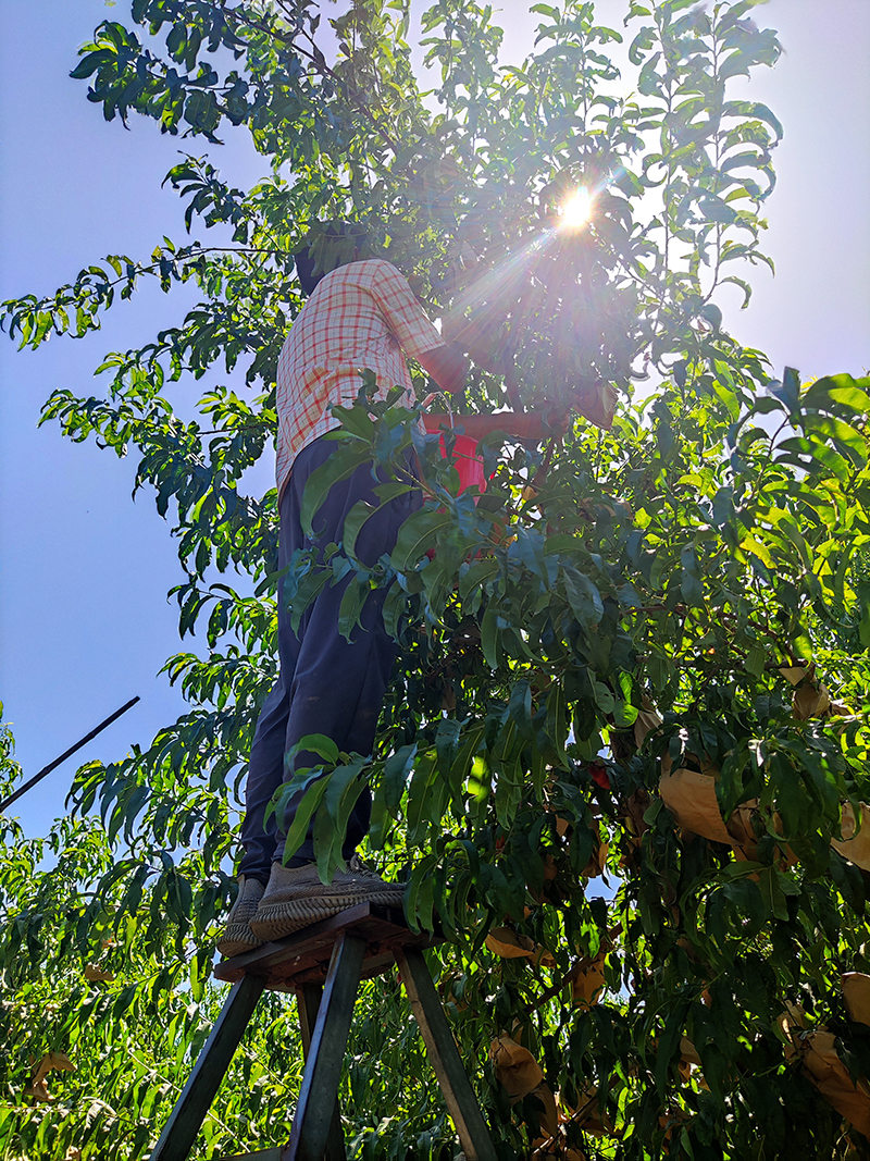 天刚蒙蒙亮,峪口镇兴隆庄村的张宝志夫妻二人已经来到了自家的桃园,顶着头灯,摸着黑,开始了一天的劳作。“早晨摘桃,才能确保摘下的每个桃子水分和糖度达到最好状态。”张宝志坦言。