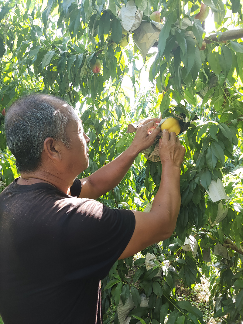 于是,摘桃、称重、分级、套上防护网袋、分类包装……合作社里又开始忙碌了起来。