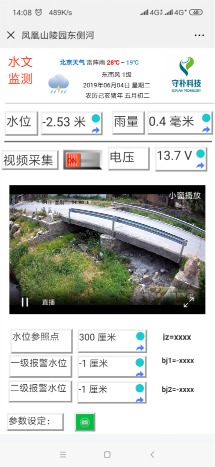 在重要沟域和流域布控12个点位防汛监测设备,对雨量、水位数据进行实时监测,并与镇级监管平台对接,监控人员通过电脑及手机随时查看,并通过手机微信推送的方式,将汛情预警推送给村委会,不仅节省劳动力,也避免了现场监测人员的意外风险。截至2021年9月,系统共获取有效数据529875条,为防汛工作提供指导及防汛预警。