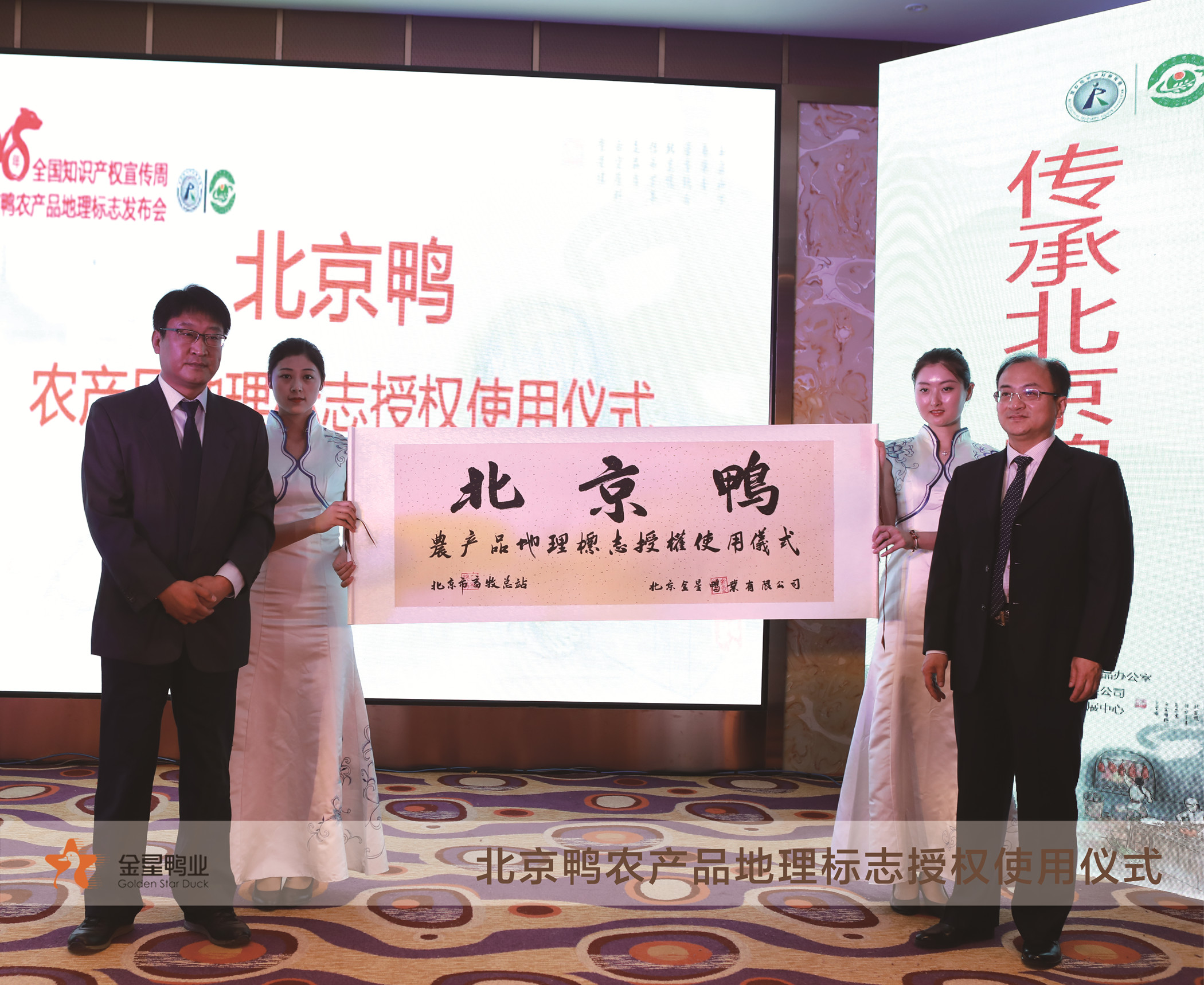 北京鸭是“北京烤鸭”最为正宗的原料鸭种,经过多年品牌培育,生产全程建立了规范化、标准化生产技术体系,2017年获国家农产品地理标志认证,2020年入列中欧地理标志互认清单。2022年北京市启动了北京鸭农产品地理标志保护工程,提升了北京鸭的品牌影响力,有力支撑和彰显了中华民族优秀农耕文化北京鸭的品牌价值、美誉度和好口碑。目前,北京鸭地理标志生产地域保护范围覆盖北京8区46个镇与街道,近几年累计带动京津冀地区养殖农户1800余户,户均年纯收入可达到10万元。