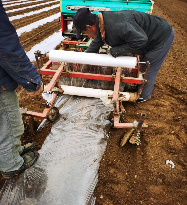 正确选用地膜:地膜应选用符合《聚乙烯吹塑农用地面覆盖薄膜》(DB62/T 2443-2019)标准要求,在秋季覆膜上推荐厚度为0.014mm、耐候期不小于360d的地膜,便于人工或机械回收。禁止使用脱标(厚度小于0.01mm)聚乙烯地膜。根据作物和茬口需求,选择不同颜色、功能的地膜。