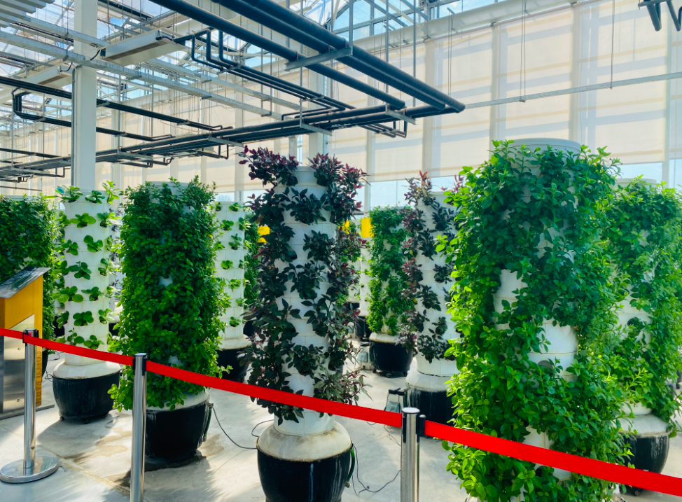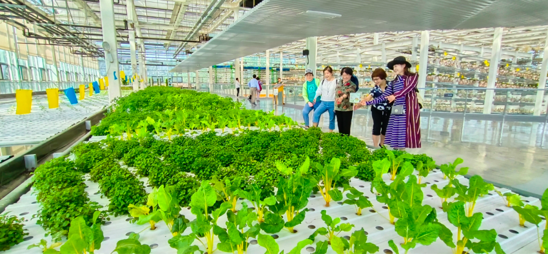 现场,讲解员重点介绍了“立柱式栽培系统”“漂浮栽培系统”“旋转追光系统”“全自动苗床细叶菜种植系统”等先进农业科技,让农业种植生产提高土地的空间利用率的同时,还能节省能源。
