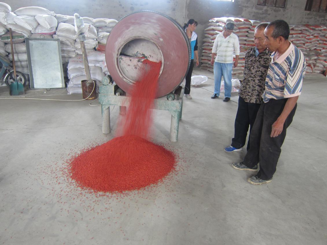为预防土传、种传病害、地下害虫及苗期蚜虫危害,播前使用杀虫剂、杀菌剂及生长调节或复合药剂拌种。农户要全面落实拌种综防技术,技术要点为:单一药剂拌种时,用50%辛硫磷乳油按种子重量0.2%拌种防治地下害虫;用70%的吡虫啉按小麦种子重量0.1%拌种防治苗期蚜虫;用多菌灵可湿性粉剂按种子重量的0.2%,或2%立克秀干拌剂、20%粉锈宁乳油按种子重量0.1%,或用12.5%特普唑可湿性粉剂按种子重量的0.25%拌种,预防锈病、白粉病。拌种时可添加植物生长调节剂,或用复合药剂拌种综防,提高小麦发芽势、发芽率和出苗率,培育壮苗,拌种后堆闷4~6小时晾干后即可播种,堆放时间过长会影响发芽率。