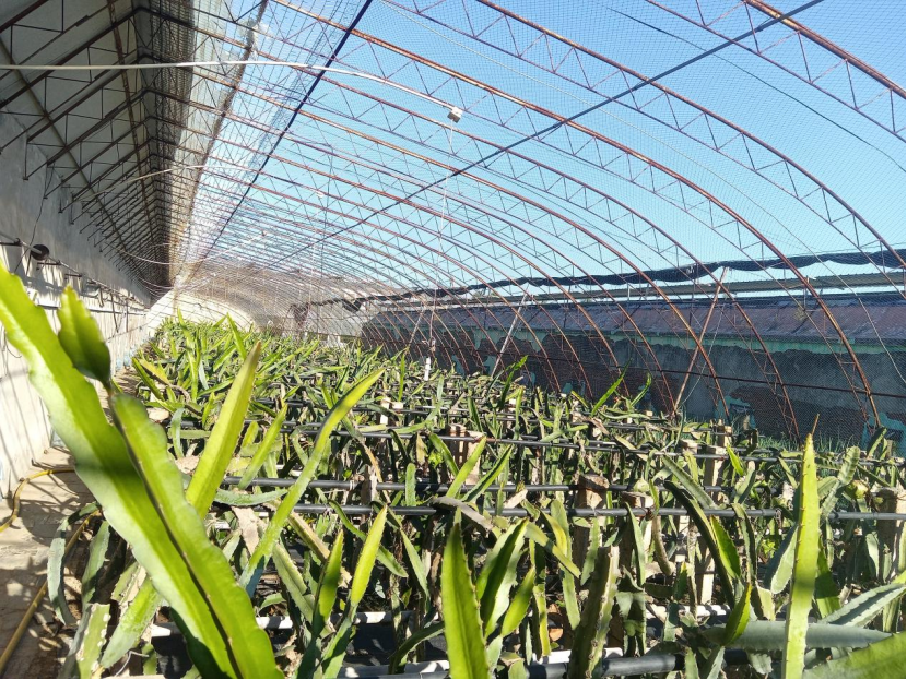火龙果抹芽、留芽。选留架面上新生芽2~3个,作为明年的营养枝,及时抹除架面以下全部新芽。产果期结束后把刺点最少的2条结果老枝剪除,将上年留下的营养枝补充为结果枝。10月份后,夜间开启补光灯6-8小时。