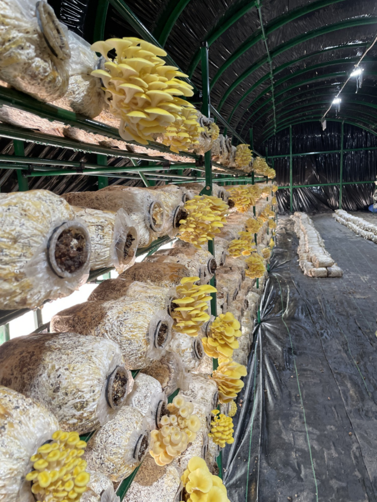 平菇、榆黄菇等处于制棒尾声、进入菌丝培养阶段的生产主体,在做好防风应对的同时,也要注意控制温度,做好健壮菌丝培养。