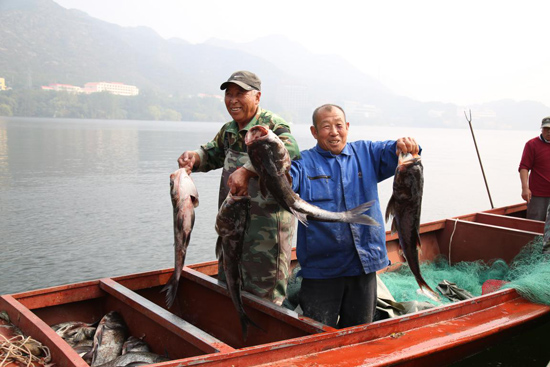 近日,记者从北京市农业局市农业技术推广站获悉,密云雾灵湖首届鱼王节开幕。随着渔船下水撒网,一尾浑圆肥美的胖头鱼从群鱼中脱颖而出,凭借13斤的“体重”,揽获“鱼王”桂冠。此次鱼王节是雾灵湖休养生息10年之后,首次进行捕捞。今后,市民将有口福品尝到高山灵湖泉水鱼的鲜美。