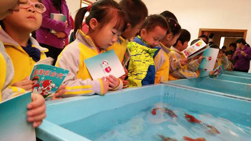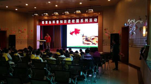 为进一步弘扬中国传统文化,凝聚鱼文化魅力,拓展鱼文化内涵,从娃娃抓起,推广休闲渔业,促进观赏鱼产业与都市发展更快更好的融合。2016年10月25日,在北京市农业局的引领和指导下,中国人民解放军总后勤部五一幼儿园、北京市水产技术推广站、北京绿芽谷芽菜公司、北京市农业局宣传教育中心联合开展了“观赏鱼科普知识进校园系列活动”。80名学生兴致勃勃的参加了本次活动。