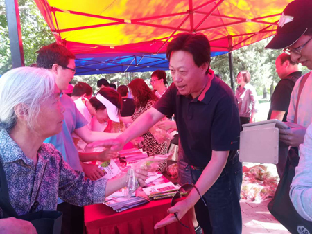 5月12日,在我国第九个防灾减灾日的当天,北京市农业技术推广站参加了由市农业局在朝阳区日坛公园举办《把握规律,防范农业自然灾害;科学应对,保障公共卫生安全》的2017年北京市农业防灾减灾宣传周活动。为了更加深入地开展农业防灾减灾知识宣传工作,市农业技术推广站张令军总农艺师带着科教信息、蔬菜、育苗、食用菌、草莓和贮藏加工等方面的技术专家在现场讲解了相关农业自然灾害知识,发放用于恶劣气候应急储备的芹菜苗1000余株,蔬菜贮藏技术等书籍350余本,农业景观宣传册600本,并当场解答市民的相关咨询。