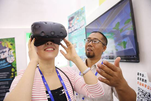 VR技术造就“穿越式农场”。曾风靡一时的偷菜游戏,让多少人沉湎不已。在如今北京展团大厅的VR体验区里,大家可以来到虚拟现实农场,体验农场的真实生活。仅仅是十来个平方米大小的场地,吸引了众多市民围观和参与。只见在体验区戴着VR头盔进行偷菜的市民,举起手柄,忘我地朝着一侧围观人群的方向,连连做出什么动作,围观的市民窃窃私语,这是怎么回事?这是VR技术,瞬间让人好像来到农业生产第一线,跟着农夫一起去种植,采摘,包装,运输等等。几分钟的体验过后,体验者摘下头盔,连连感叹:“太真实了,太真实了!”另一旁在排队区等候的市民接过头盔,在工作人员的帮助下,视角很快就进入了另一个“空间”。在记者观测的时间内,来此体验VR虚拟现实的市民应接不暇,几乎没有空闲下来的时候,驻足围观的市民一圈又一圈。据现场工作人员介绍,每天参与体验的市民达到两三百人次,十分火爆。