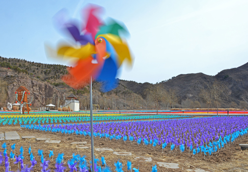 春分节气刚过,北京市区已经桃红柳绿,但是山区还有冰雪等待消融,百花盛开的时节还要等一段日子。然而,就在这稍显冷清的时节,让人们遇见了色彩斑斓的风车“花海”。